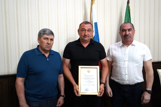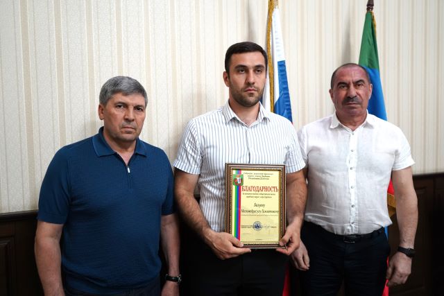 Благодарность Собрания депутатов городского округа «город Дербент» за активное участие в общественной жизни выражена помощнику депутата Магомедрасулу Базуеву.