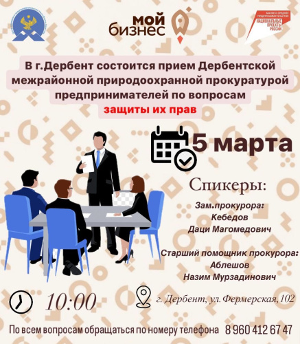 • В Дербентской межрайонной природоохранной прокуратуре проводится прием предпринимателей